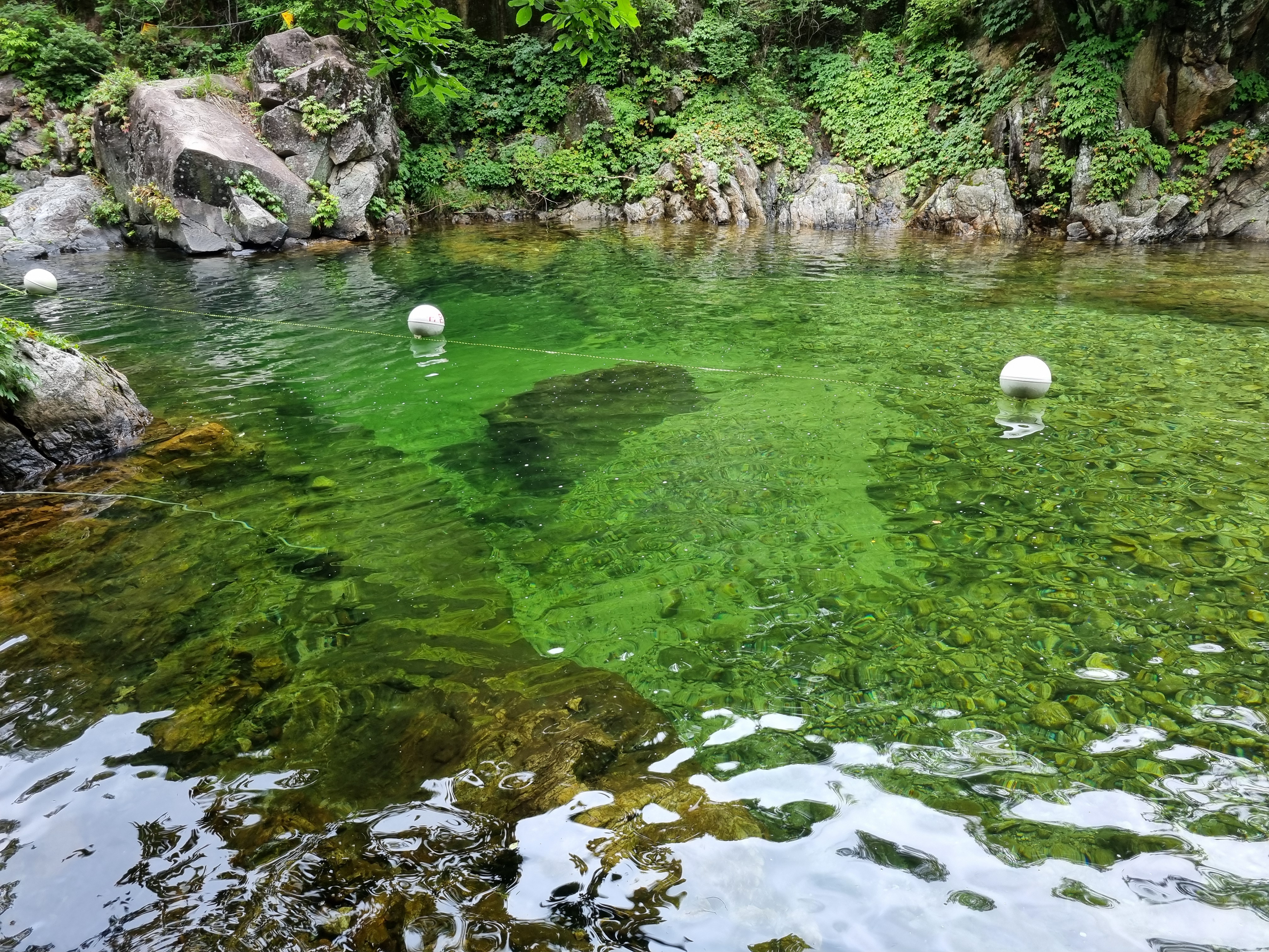 물속이 정말 맑죠? 바닥의 돌까지 훤히 들여다보일 정도로 투명했어요.