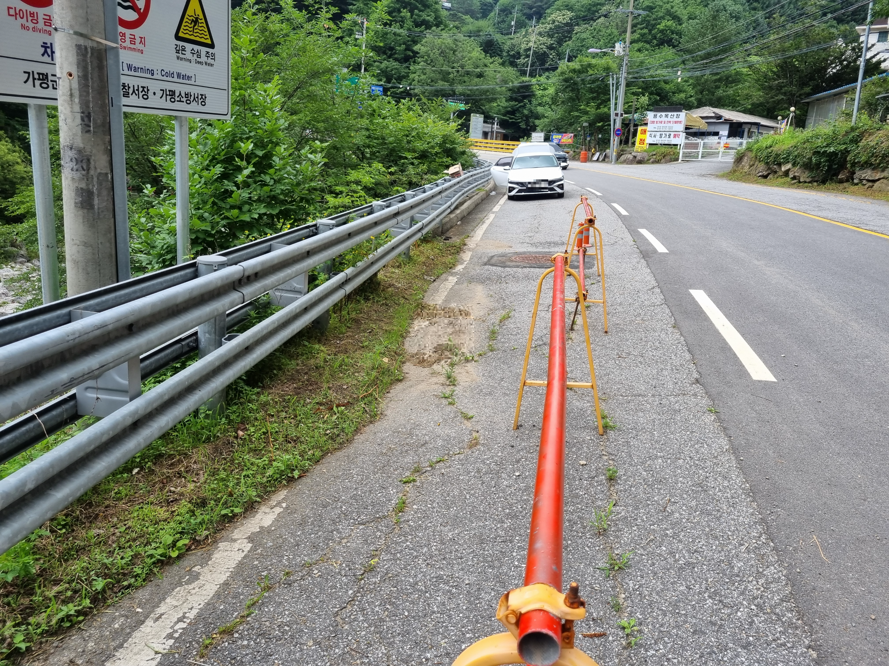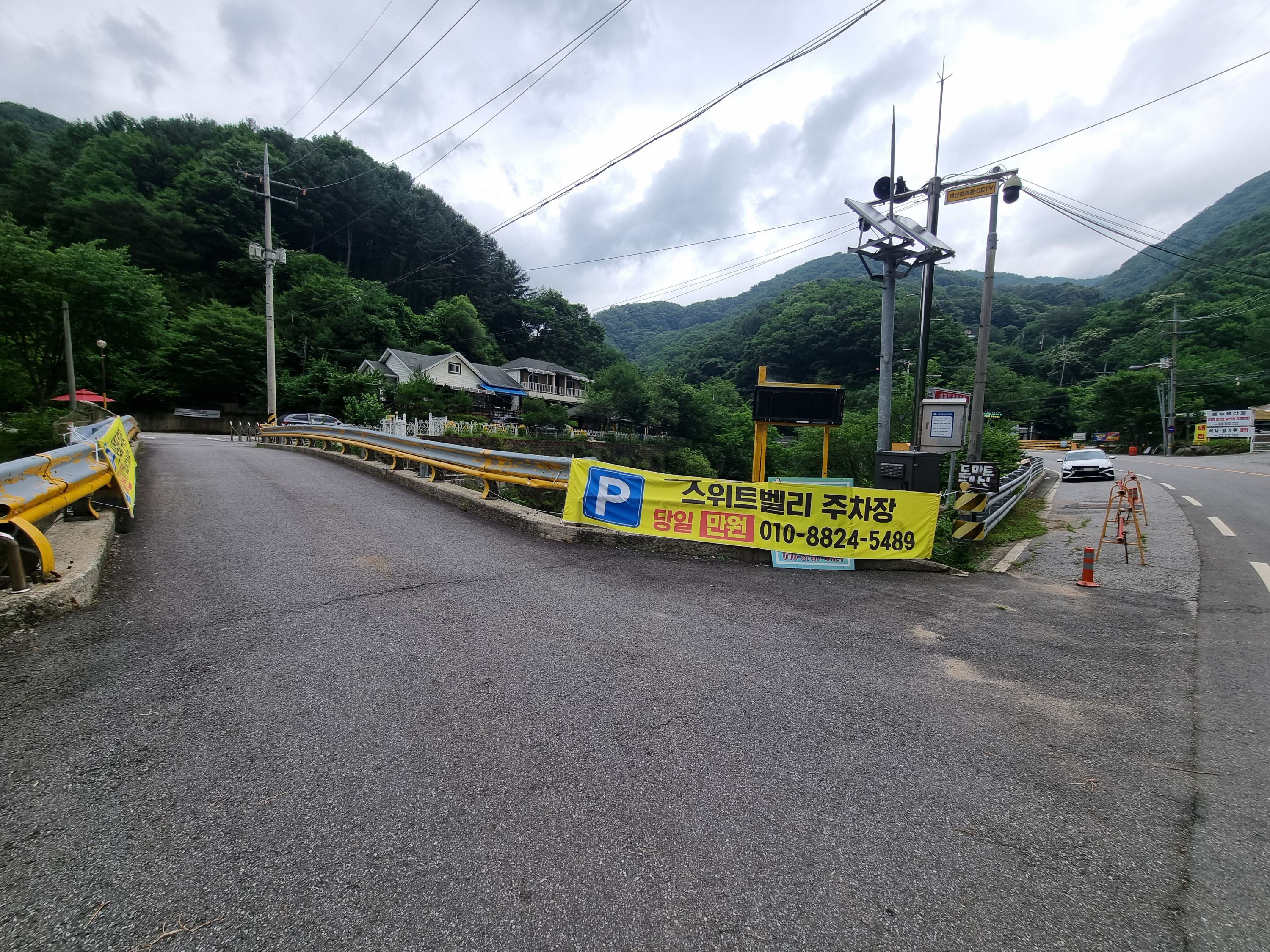 계곡 근처 도로와 주차 가능 공간