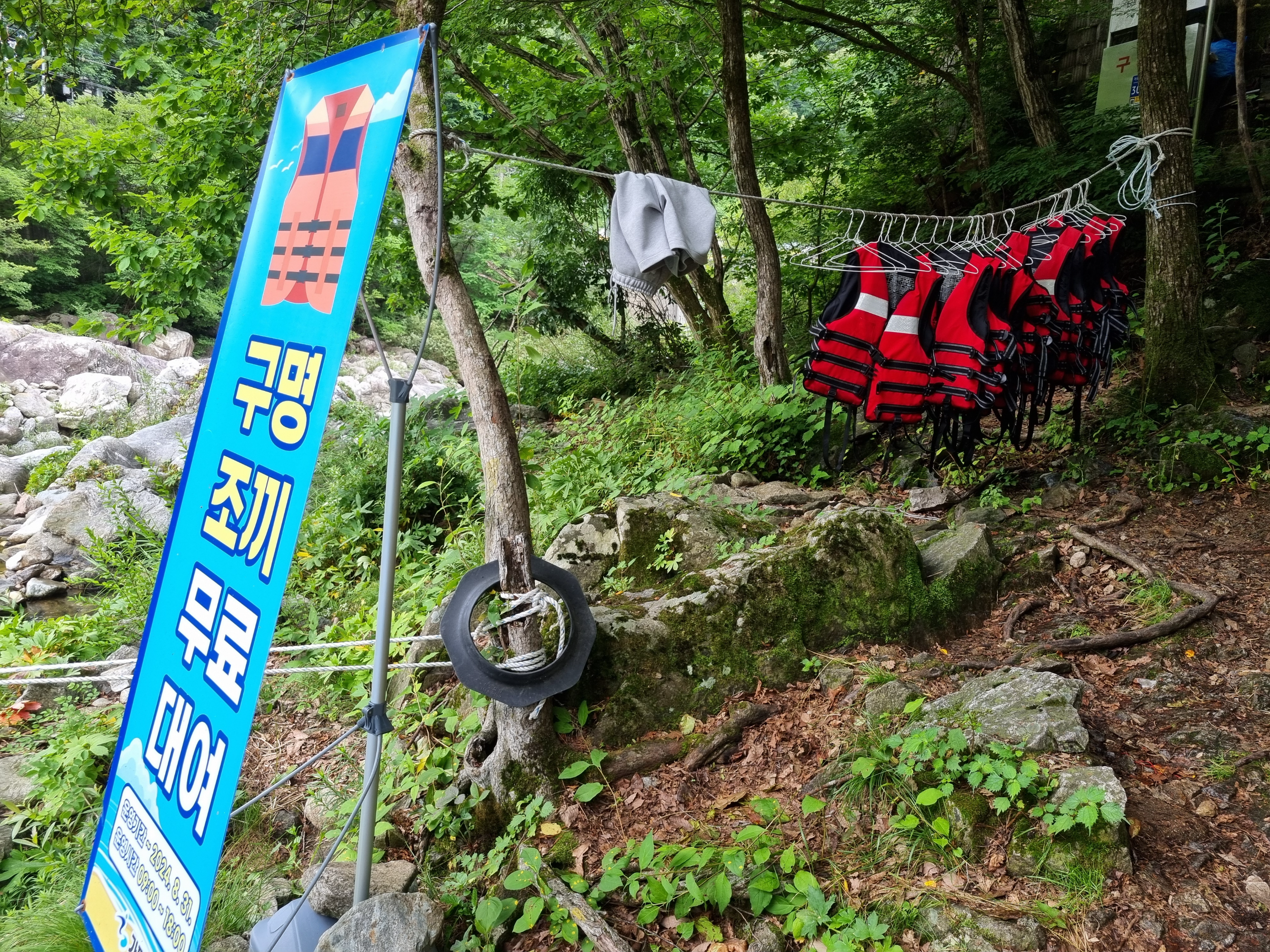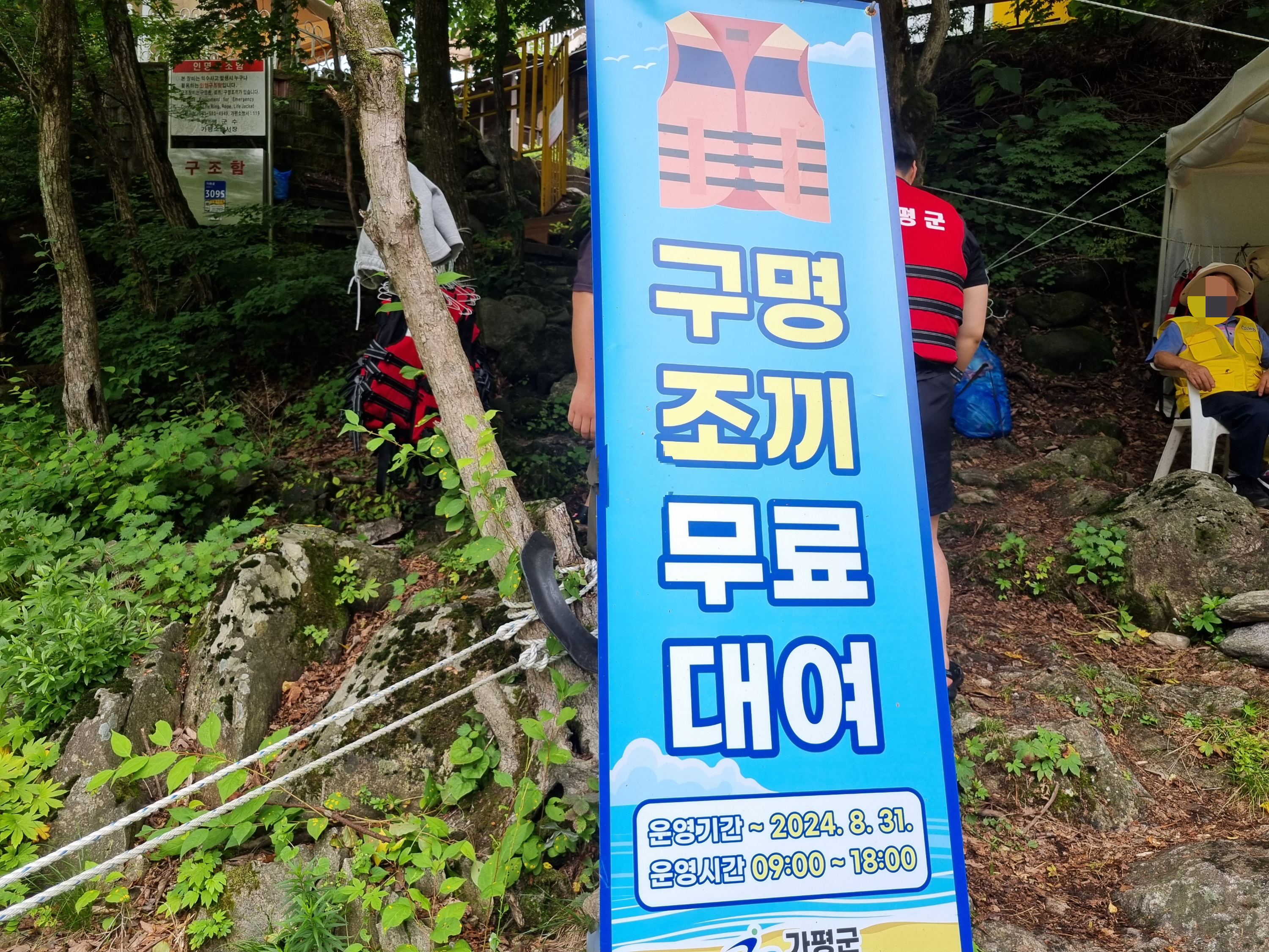 구명조끼 대여시간은 오전 9시부터 오후 6시까지이고, 2024년 8월 31일까지로 안내되어있는데 24년에 쓰던 입간판을 그대로 사용했나봐요. 뭐 재활용하면 세금 비용 절감되고 좋은것이겠지요.