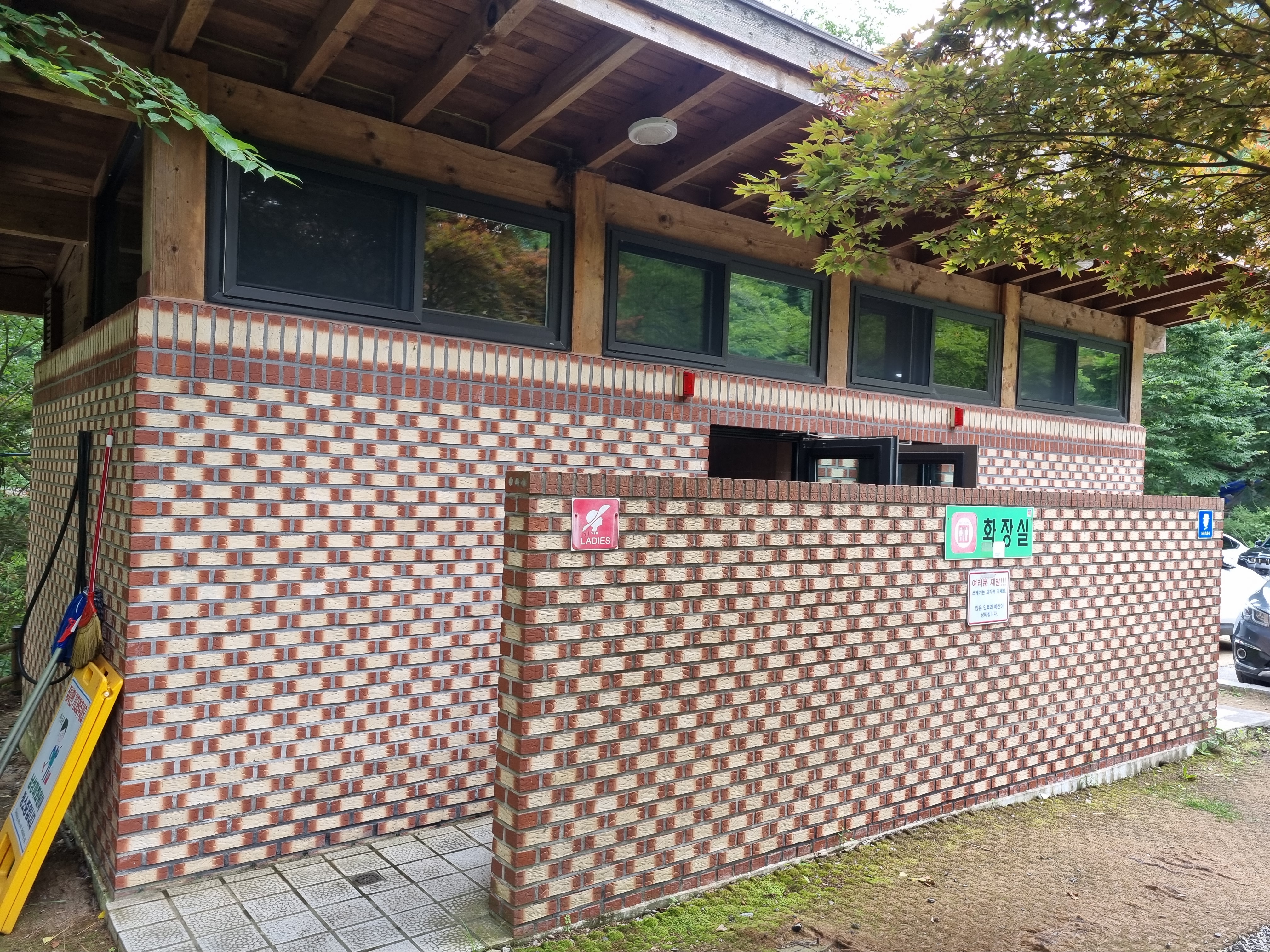 무료주차장 바로 옆에는 공용화장실이 마련되어 있었는데요. 물놀이 장소에서는 화장실 접근성이 매우 중요한데, 가까운 위치에 있어 불편함 없이 이용할 수 있었답니다. 남.녀 화장실이 따로 잘 구분되어 있어서 좋았어요.