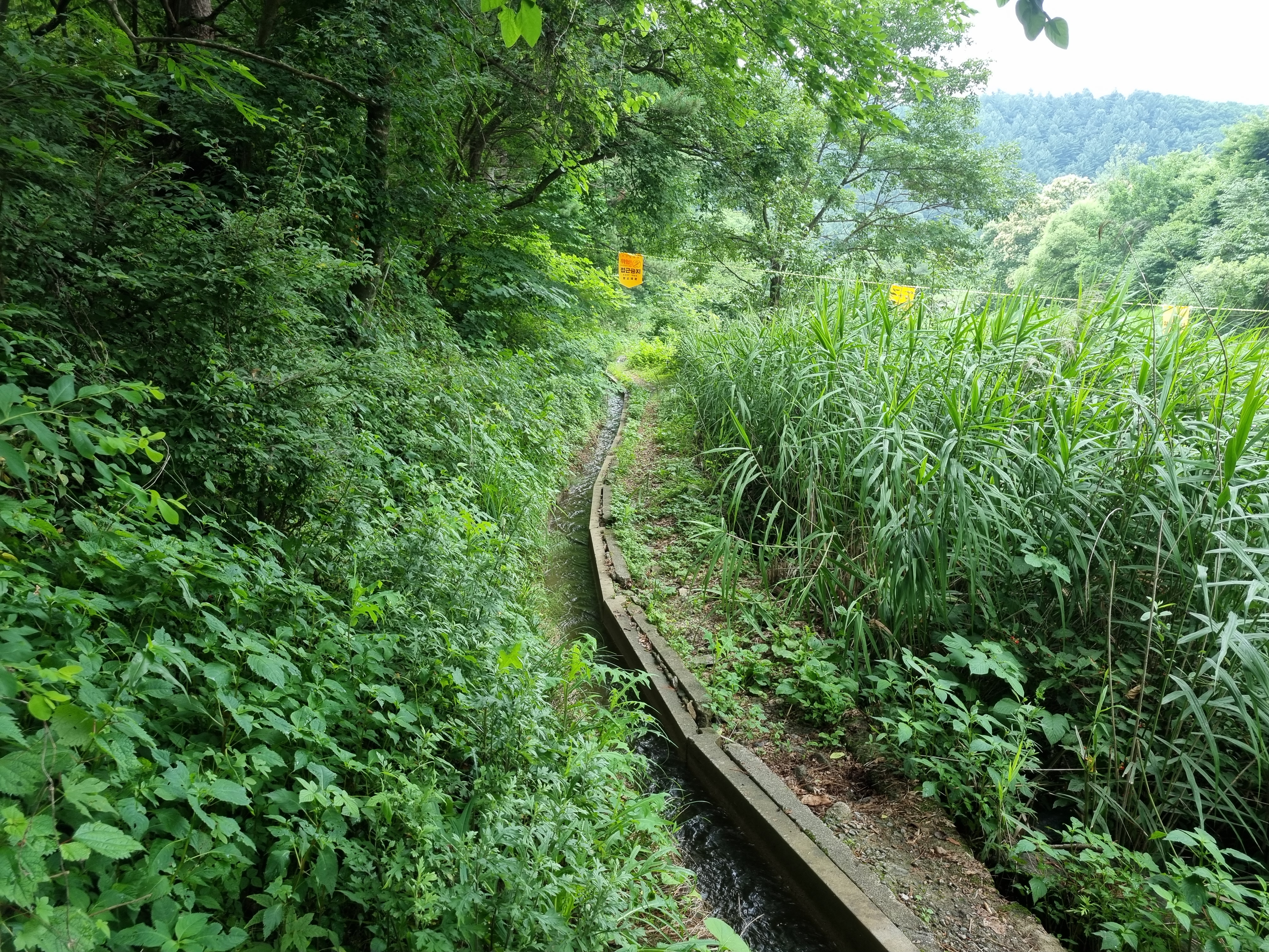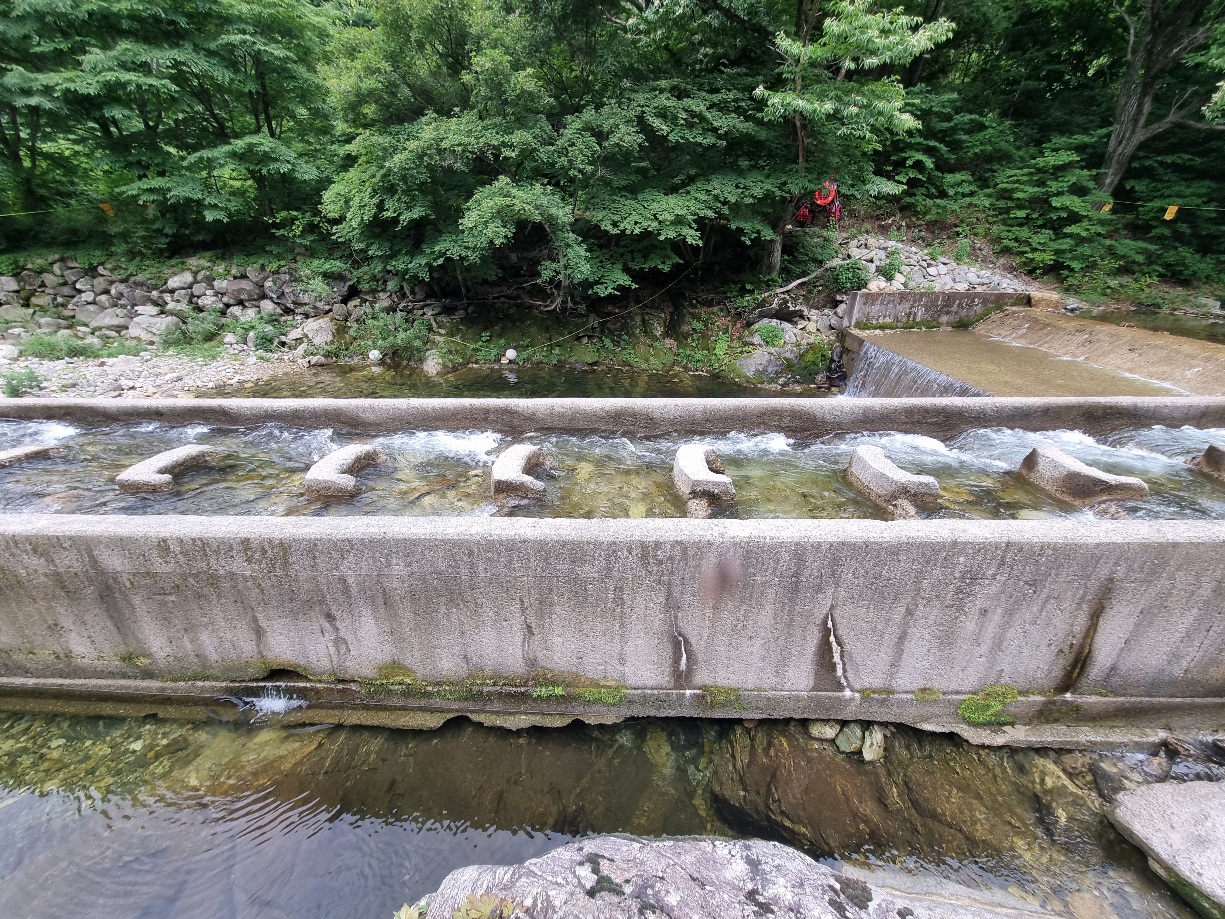 진입로를 완전히 내려가면 인공 수로가 나와요. 이 수로를 따라 물이 흘러오는 쪽으로 올라가면 계곡이 나와요. 인적이 거의 없어 정말 조용하고, 도시 소음은 전혀 들리지 않는 힐링 스팟이에요. 물은 깨끗하게 흐르고 있어서, 바라만 봐도 더위가 싹 가시는 기분이었어요.