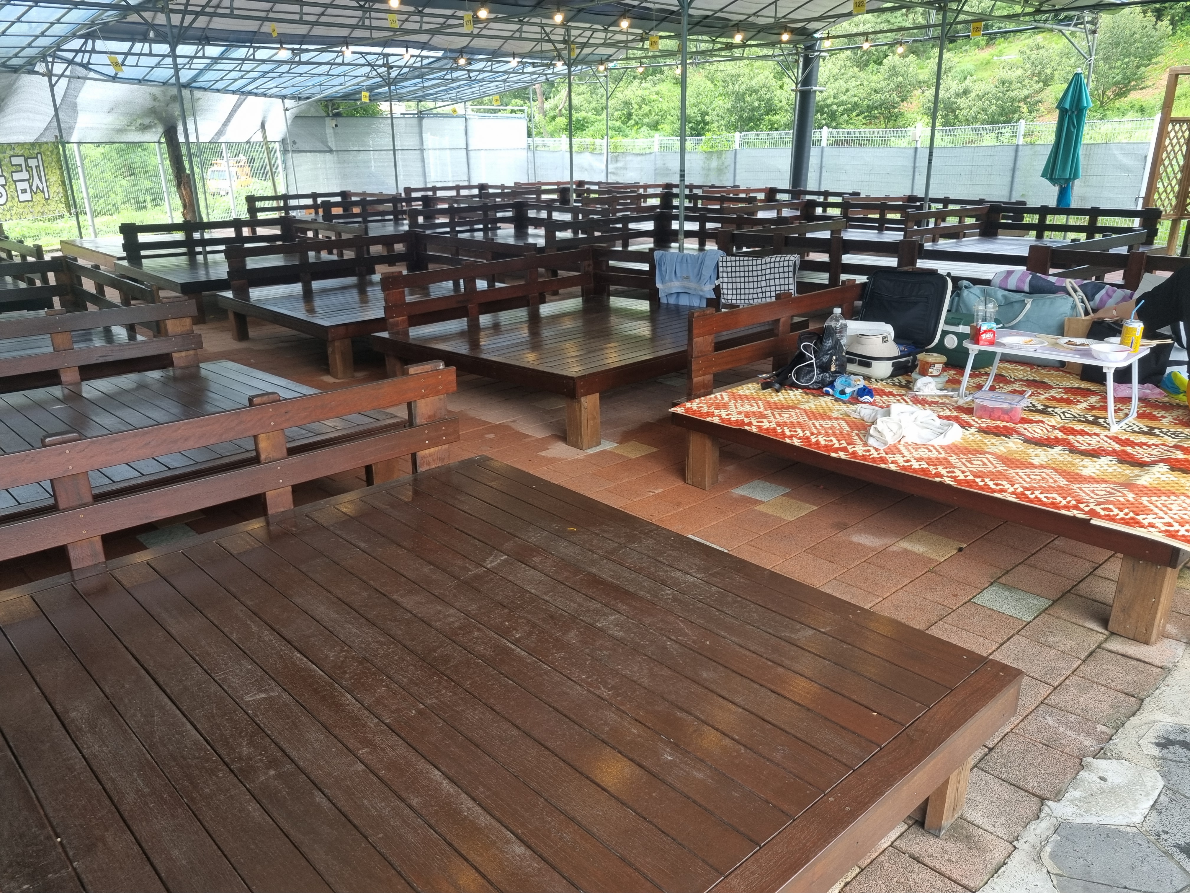 히든밸리송추 평상자리 팁을 드리면 매점에서 가까운 1번자리가 명당자리에요. 그 옆으로 2~5번 자리도 좋고, 맞은편에 있는 61~65번, 그리고 유아풀 쪽 86~90번 평상 자리도 추천해요.