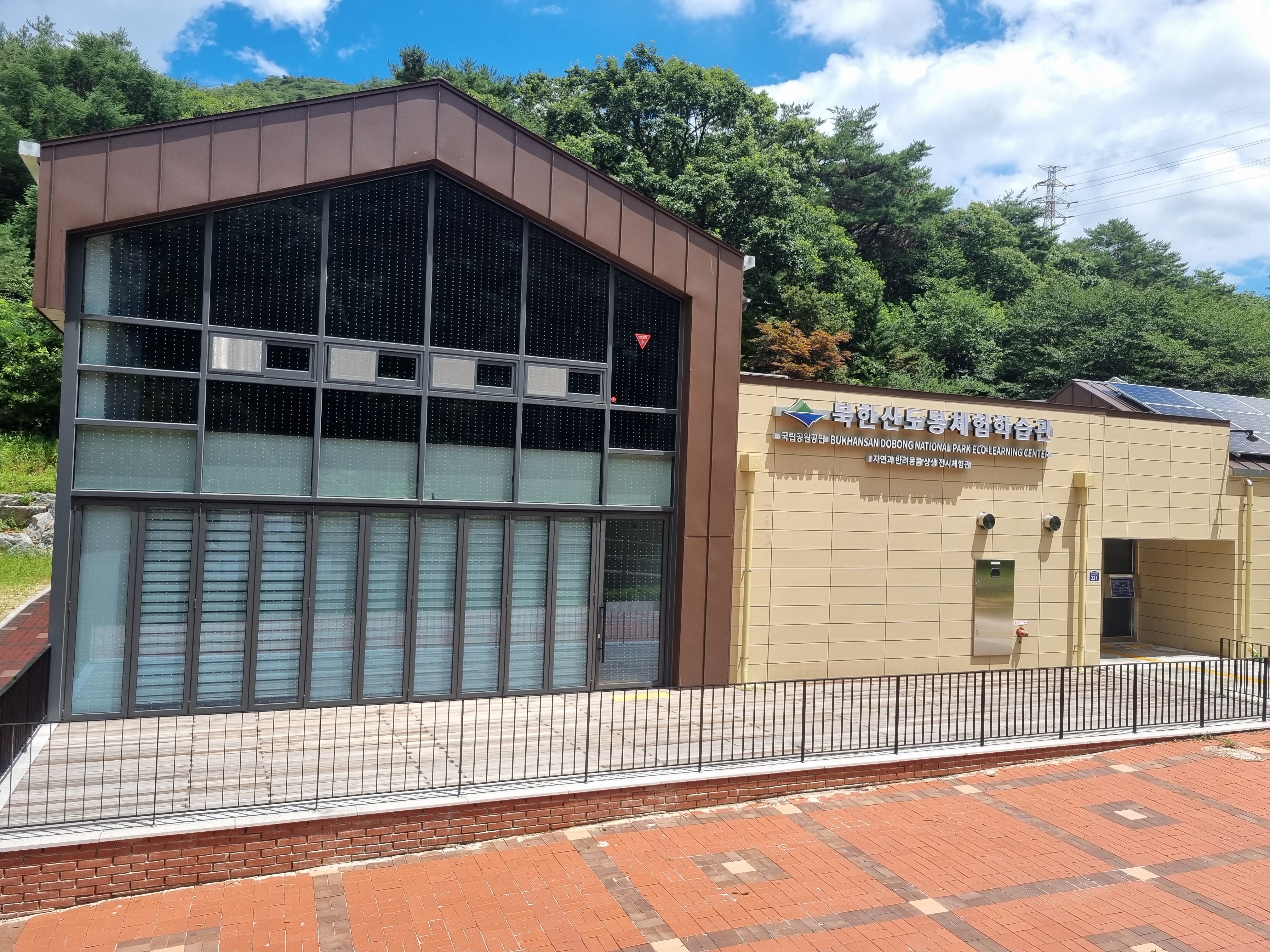 차량이 출입불가능한 출입통제소를 지나서 조금 더 올라가면 ‘북한산 도봉체험학습관’이라는 건물이 보여요. 이 건물이 바로 송추계곡에서 가장 수심 깊은 구간의 기준점이에요. 이곳 바로 앞에 송추계곡 최고의 수심을 자랑하는 물놀이 스팟이 있어요.