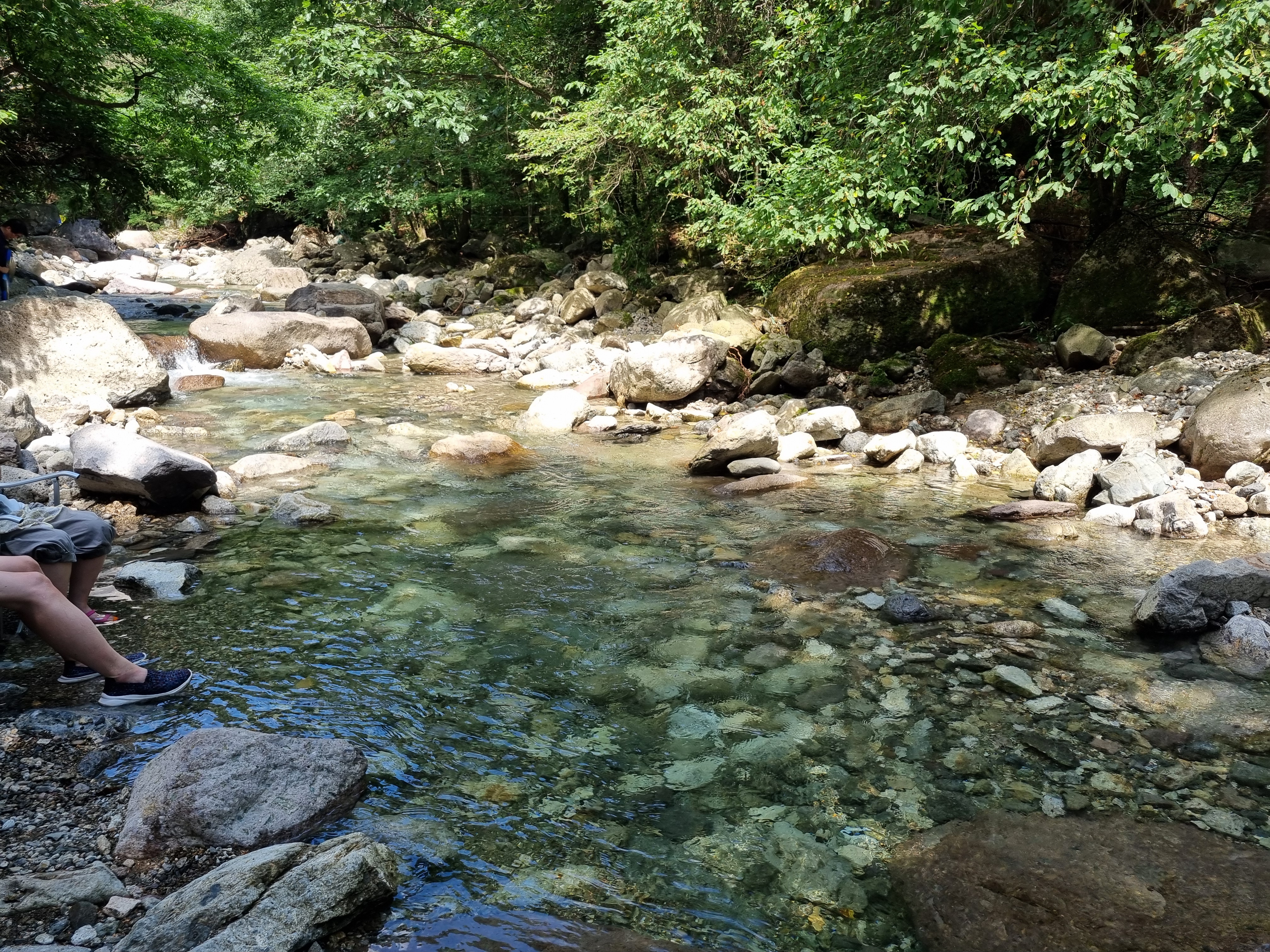 큰 바위 주변은 물이 고여 살짝 더 깊어지기도해서 몸을 담그기 좋았어요. 차가운 계곡물에 누워 맑은 하늘을 바라보면 정신이 번쩍 든답니다. 산속이라 공기도 맑고, 한여름에도 선선한 바람이 불어 마음까지 시원해지는 기분이에요.