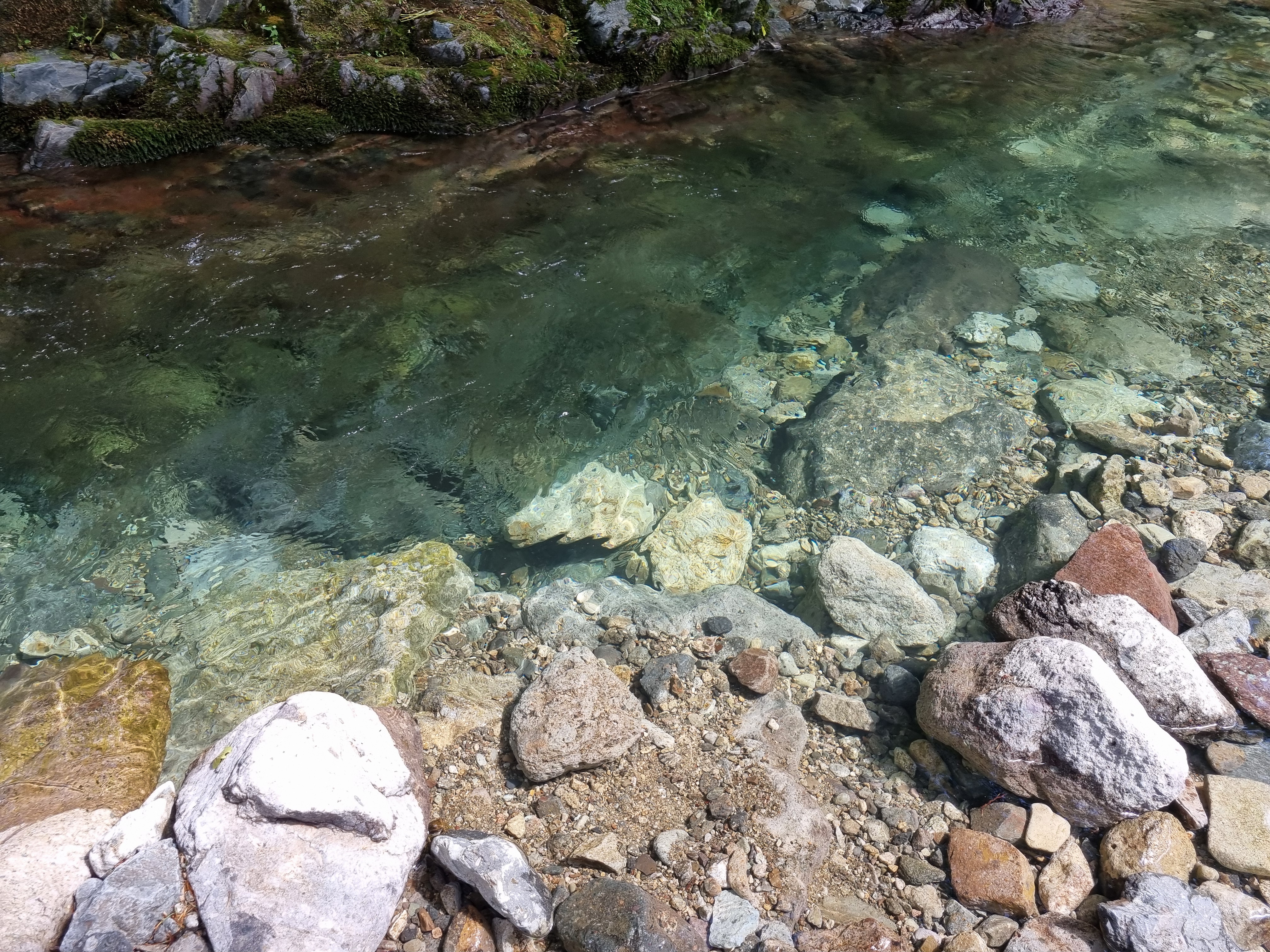여기는 바위 절벽이 옆으로 이어지며 자연스럽게 그늘을 만들어주는 구간이에요. 물햇빛이 강한 날엔 이처럼 자연 그늘이 있는 자리를 찾는 것도 아주 행운이에요. 수심도 제법 깊은게 어른 허벅지에서 허리정도까지 와서 수영을하거나 몸을 담그고 더위를 식히기 딱 좋아요.