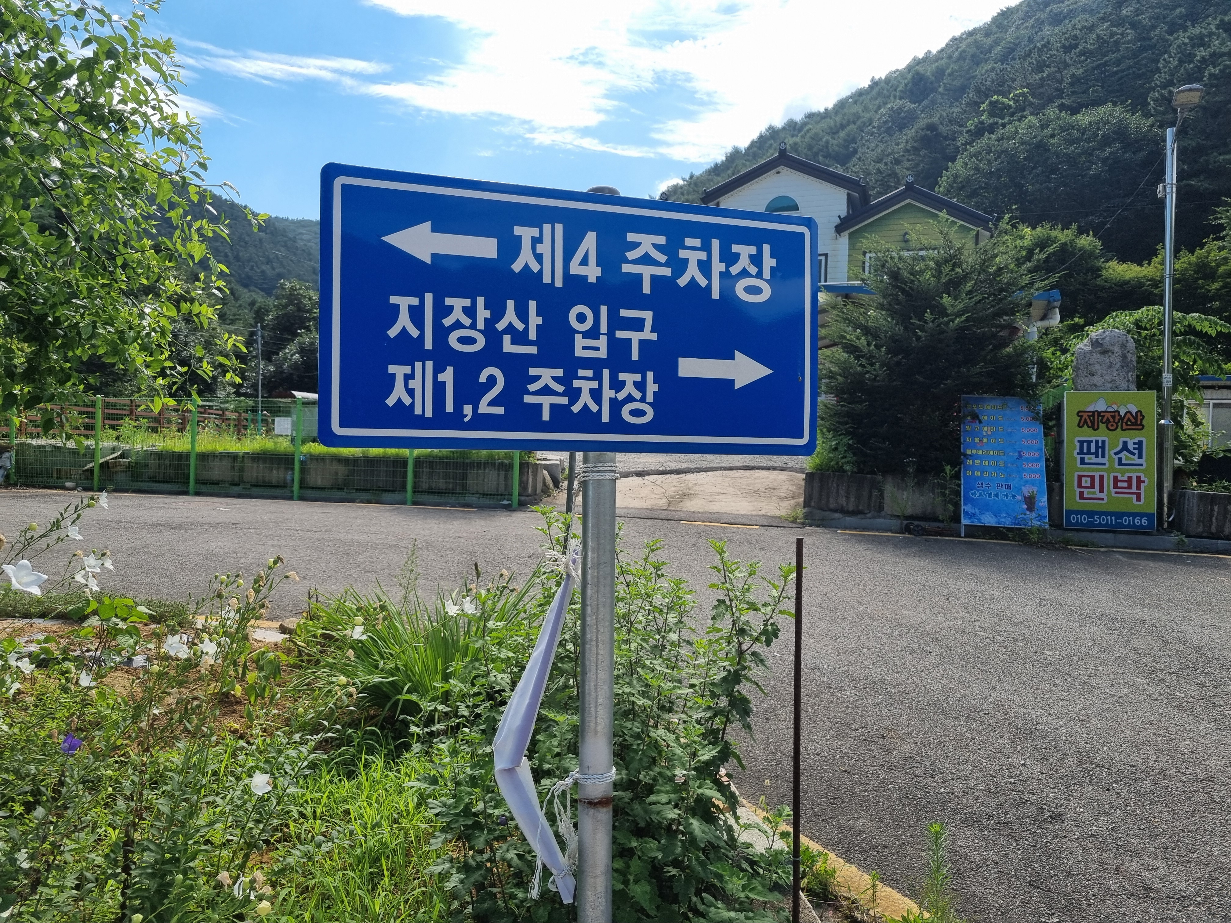 지장산계곡에는 제1주차장부터 제4주차장까지 4개의 주차장이있는데요. 앞서 말했듯이 주차장이 한곳에 몰려있지않고 여러 곳에 분산되어 있으니, 만차일 경우 다른 구역으로 이동하면 돼요. 계곡으로 가는 길에는 주차장을 가리키는 파란색 이정표가 있으니 이정표를 잘보고 주차를 하면 된답니다. 참고로 제 4주차장은 지금 공사중이라서 주차가 불가능해요.