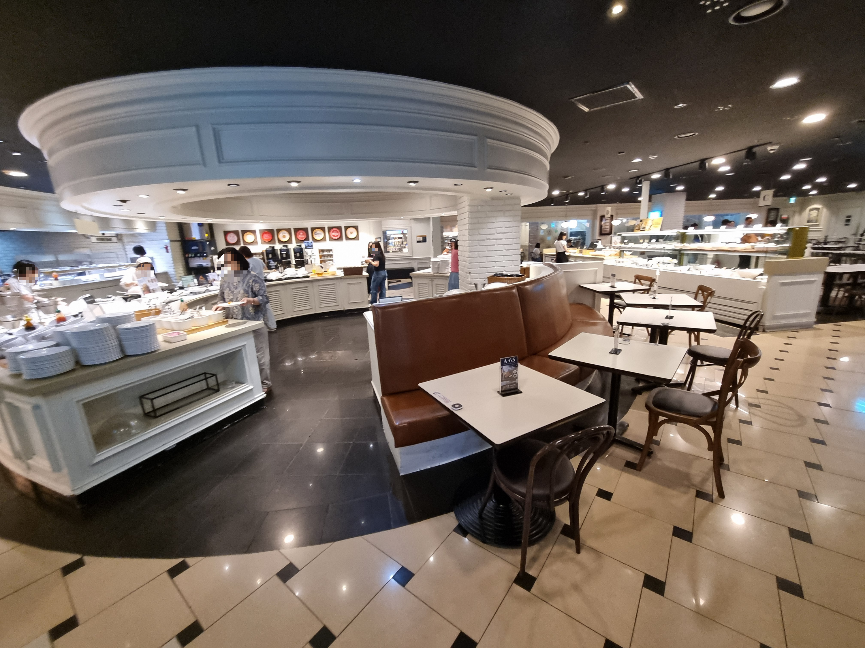 메인 홀은 이렇게 넓고 시야가 탁 트여 있어요. 단체석부터 2~4인용 테이블까지 다양하게 배치돼 있어 방문 목적에 맞게 자리 선택이 가능해요. 밝은 조명과 깔끔한 테이블 세팅 덕분에 식사 내내 쾌적했어요.