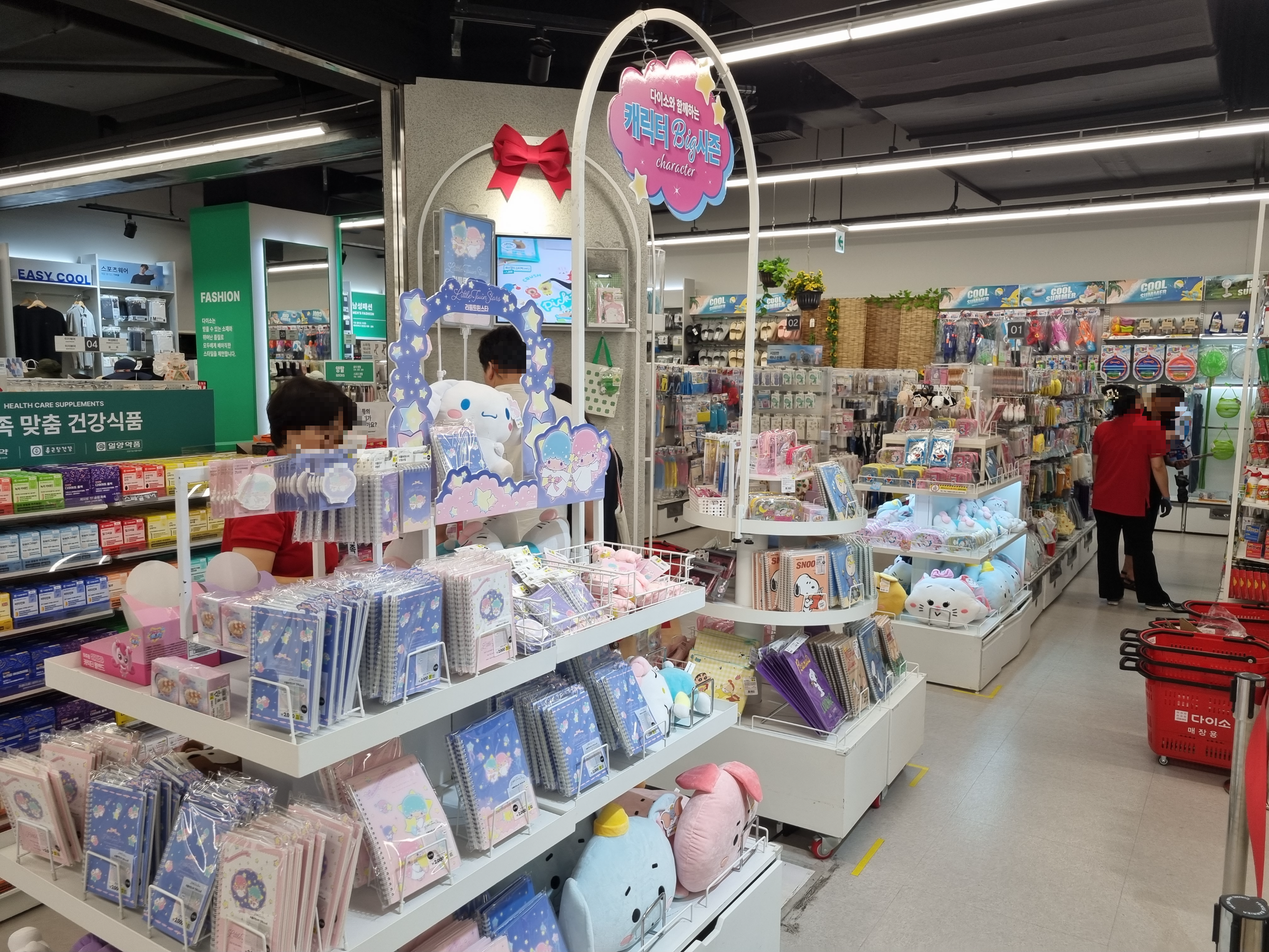 매장 안으로 들어서면 가장 먼저 귀여운 캐릭터 코너가 눈에 들어와요. 시나모롤, 마이멜로디, 헬로키티 등 다양한 인기 캐릭터 상품들이 진열되어 있는데, 노트와 인형, 파우치, 문구류 등 아기자기한 아이템들이 많아서 선물용으로도 좋아요. 캐릭터 덕후들에게는 꼭 들러야 할 공간이에요.