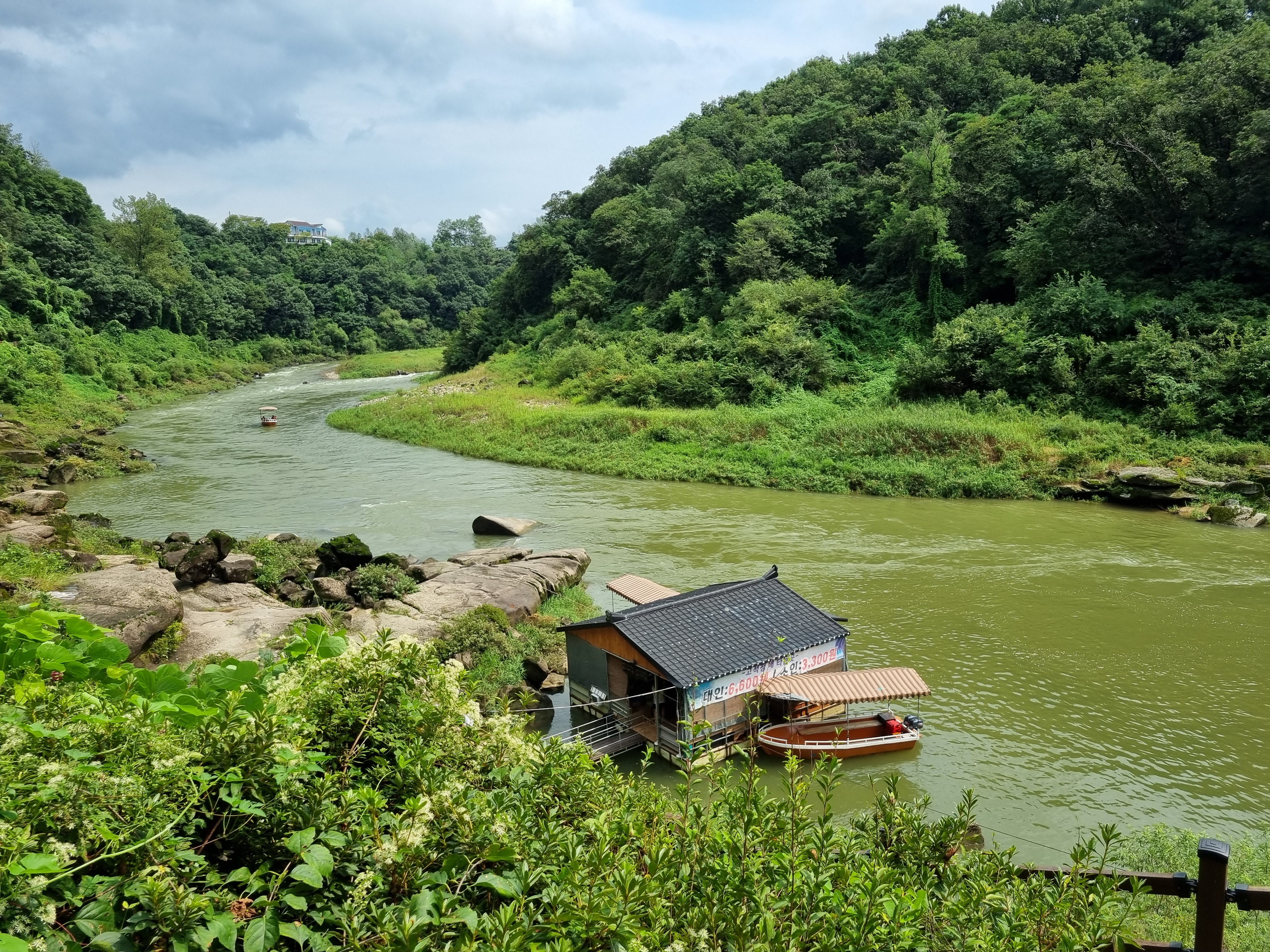 강 위를 떠다니는 통통배에는 여행객들이 여유로운 시간을 즐기고 있어요. 강바람을 맞으며 천천히 강을 따라 이동하다 보면, 고석정의 자연경관을 더욱 가까이서 느낄 수 있어요.