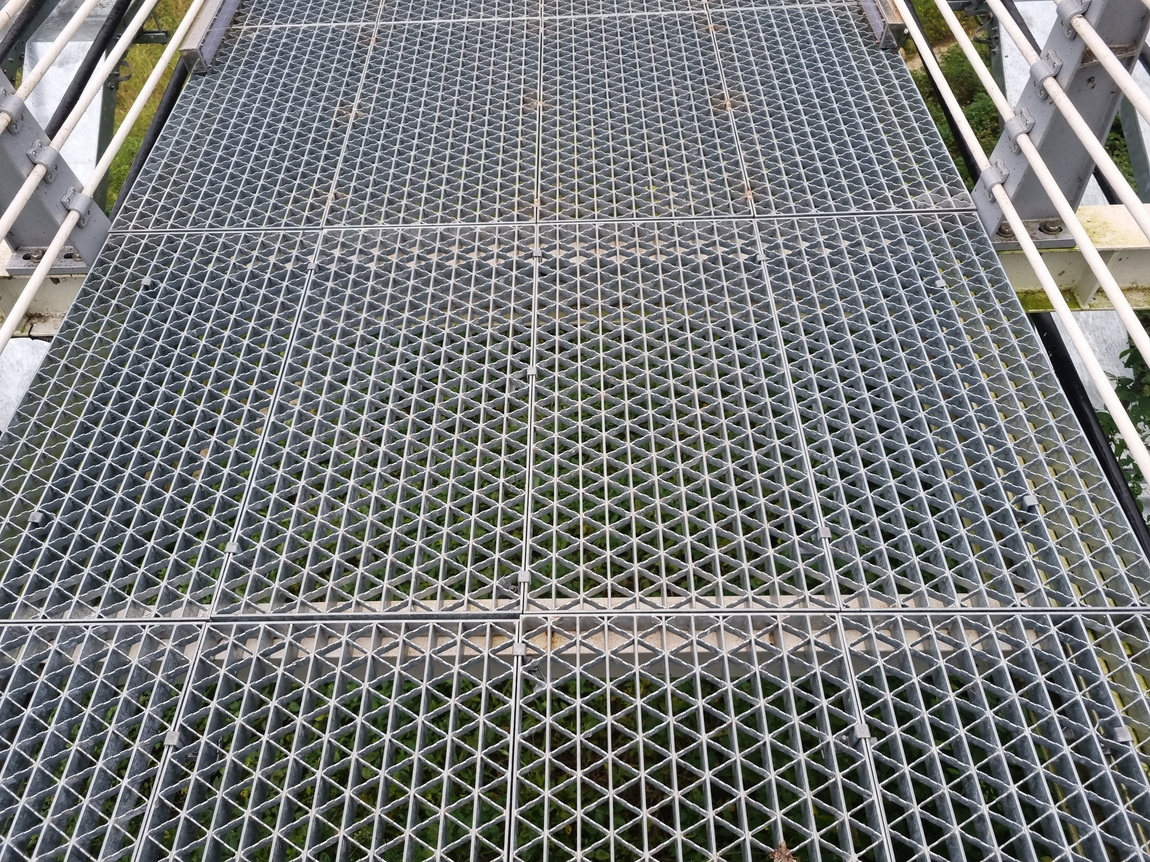바닥은 철제 격자무늬로 되어 있어서 아래로 강물이 비쳐 보여요. 처음엔 살짝 아찔했지만, 걷다 보면 오히려 그 투명함 덕분에 더 시원한 기분이 들어요. 비 오는 날에는 미끄러울 수 있으니 조심해야겠지만, 맑은 날에는 걷는 재미가 쏠쏠하답니다.