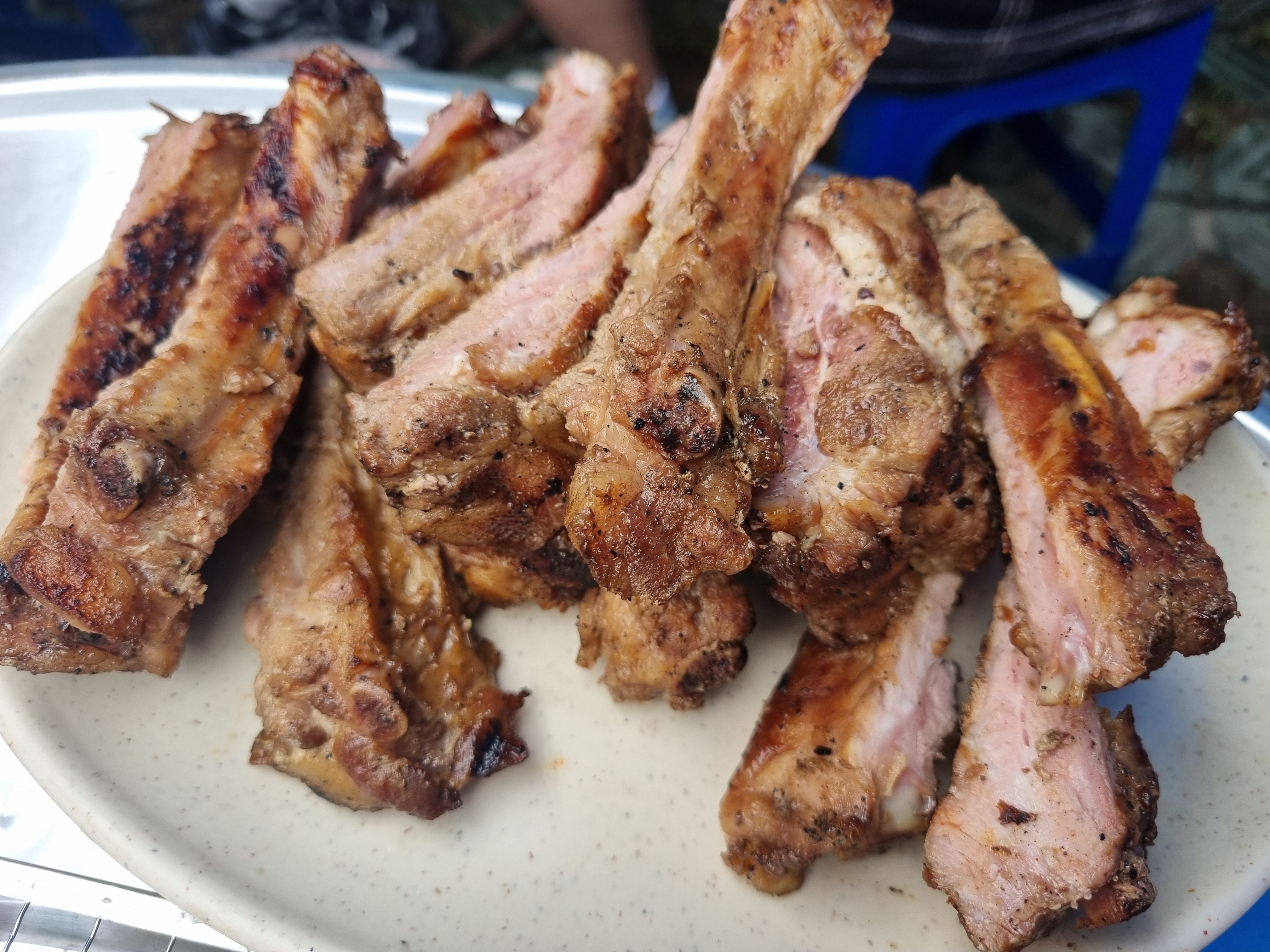 완전히 구워진 등갈비는 불향이 가득 밴 채로 윤기가 흐르고 있었어요. 겉은 카라멜색으로 노릇하게 구워졌고, 고기 속에는 육즙이 그대로 머물러 있었어요. 한입 베어 물면 겉의 고소함과 속의 부드러움이 조화롭게 어우러졌어요. 이런 맛이야말로 오일장에서만 느낄 수 있는 진짜 시장표 고기 맛이에요.